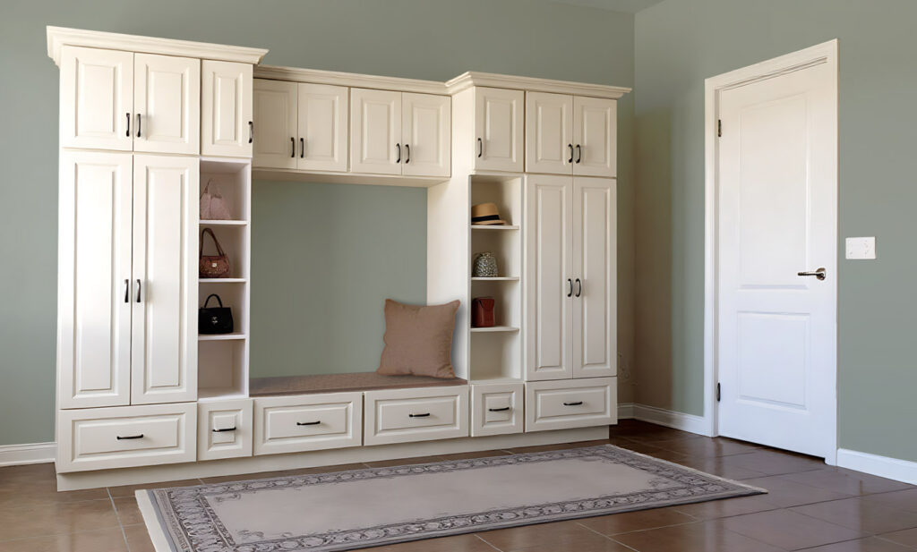 Don’t settle for a entryway made of stock box-store cabinets or mismatched, cast-off odds and ends!