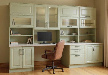 With OrganizedSpace home office cabinets and our Online Design tool you can create whatever you want in your home office, without the limitations of other DIY offerings. Choose from a wide range of cabinets, door styles, woodgrains or designer colors, and hardware options to match the décor of any room in your home. And everything can be custom-sized for your needs.